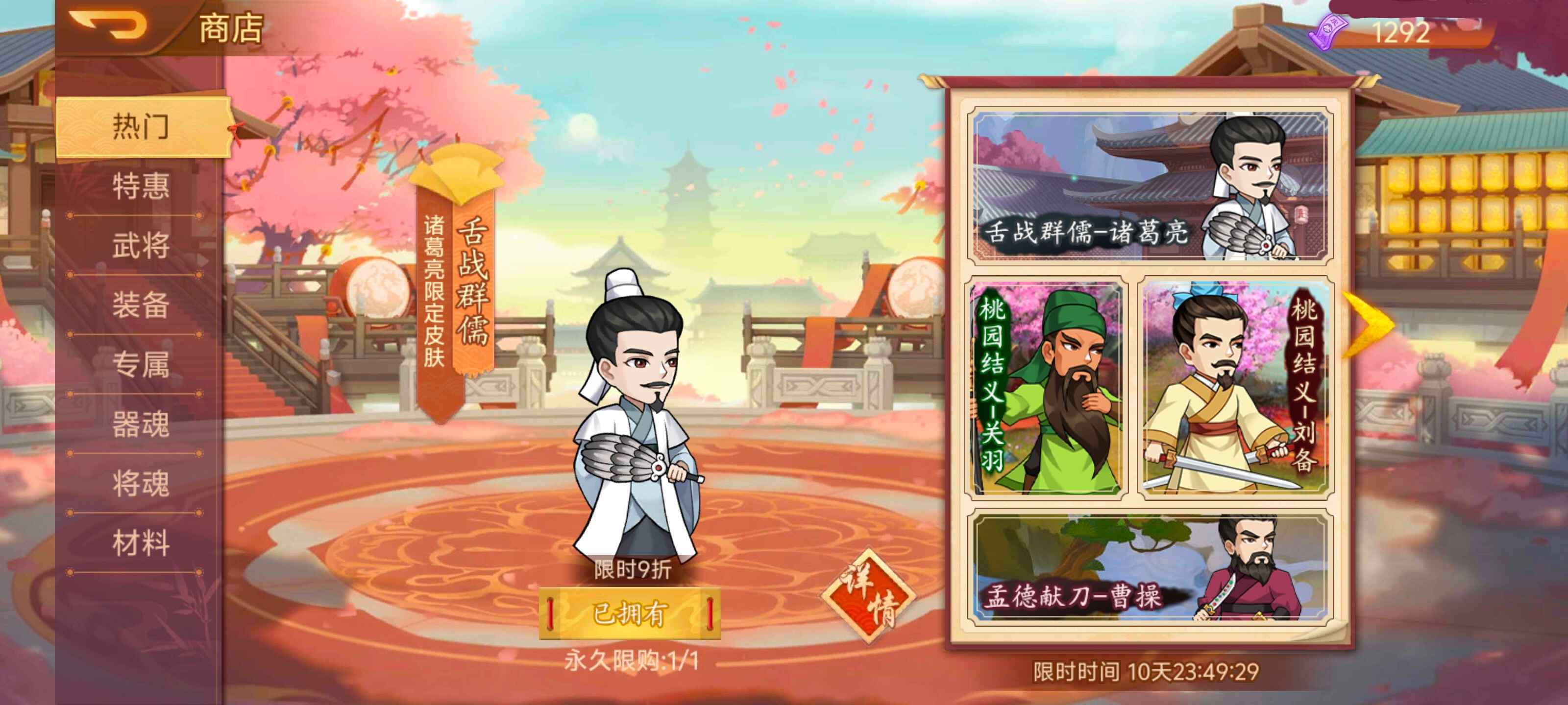 活动内容:曹操,诸葛亮,关羽,刘备限定皮肤商城热卖!