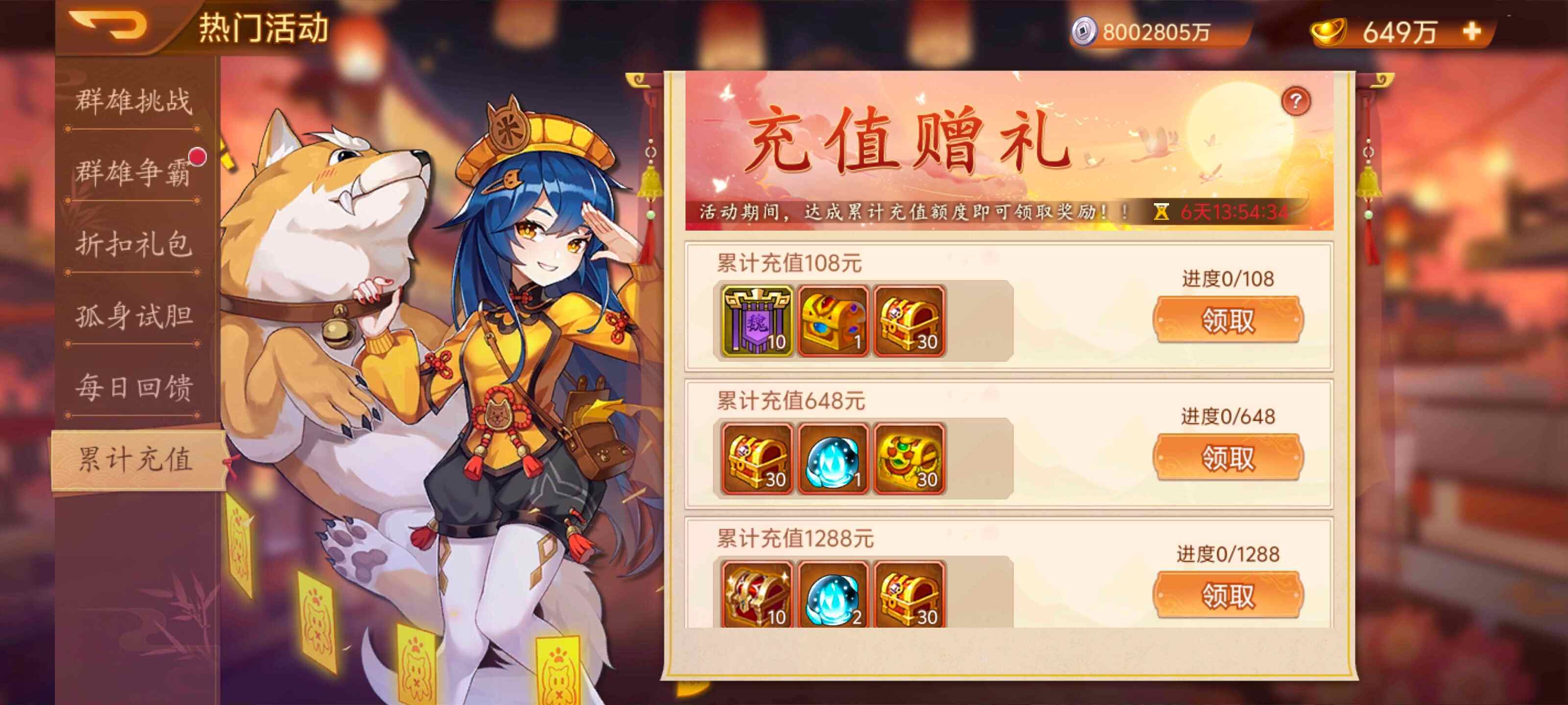 活动内容:活动期间,累计达成充值额度即可领取奖励!