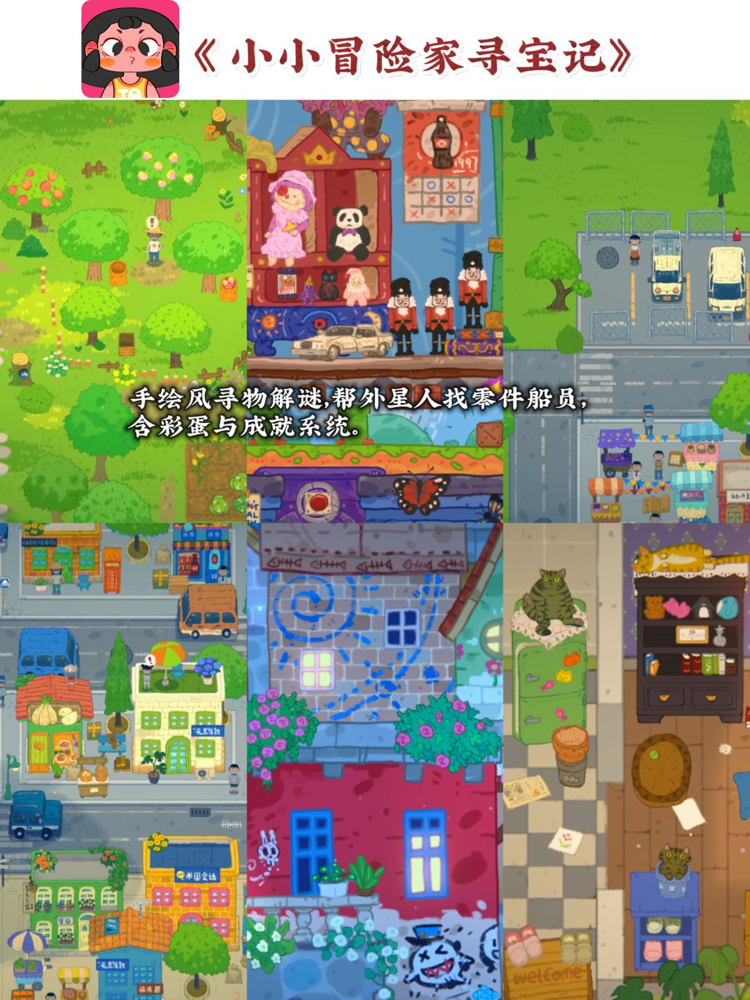 1. 小小冒险家寻宝记(已上线):手绘风寻物解谜,帮外星访客找飞船零件与船员,藏彩虹糖彩蛋,轻松治愈,成就满满.