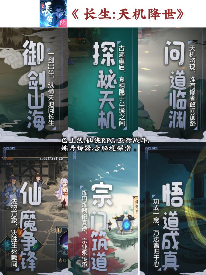 4. 长生:天机降世(已上线):仙侠RPG燃炸!五行战斗+炼丹铸器,秘境探宝停不下来.