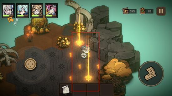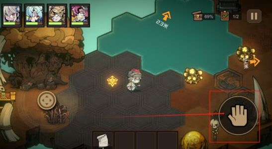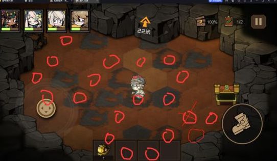 1.在模拟训练中的有的特殊区域是拿神秘矿石资源的。采矿石的时候按中三个点就可以了,不要按着不松手,另外这个矿石采完会失血,所以在闯关的时候选择一些回血的技能牌。