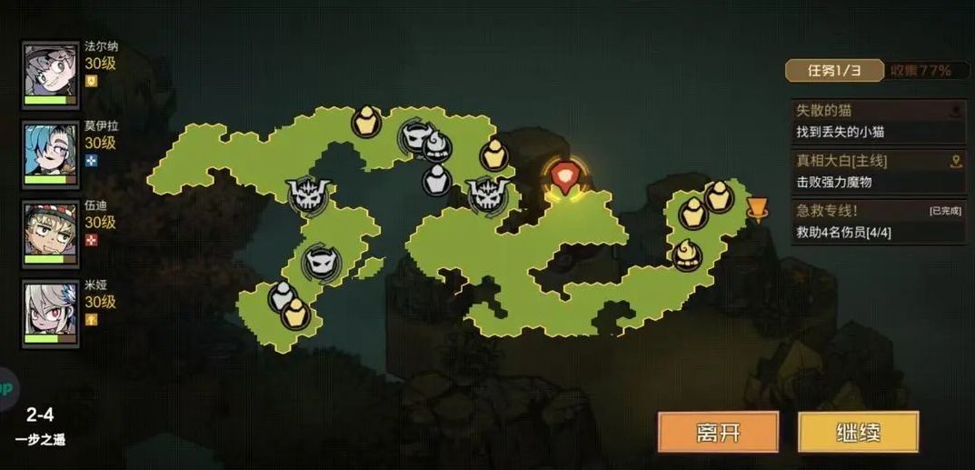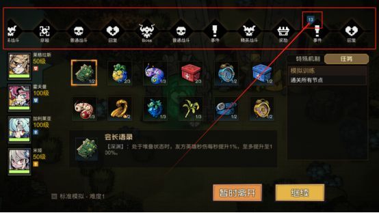 3.模拟中在选择出现洞窟的时候可以选择自己需要的洞窟去打,有些是物资的,有些是回血的。记得在训练中把地图逛逛,有些有宝箱的。