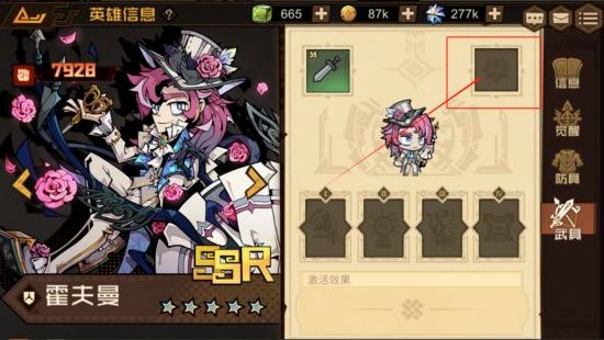 ps:任务一定要做,不然没办法升级玩下去,装备武器可以一个一个英雄点击查看哪个可以装备。做完主线任务第一天第二篇的时候,基本可以通过第一章前两关。
