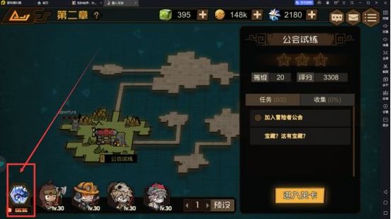 蒂格镇的冒险者们,在咱们进入游戏后,首先跟着新手指引走,通关第一章节第一关的时候,就会开启冒险指南,把冒险指南第一天的5章做完,即可升级继续通关后面的主线。