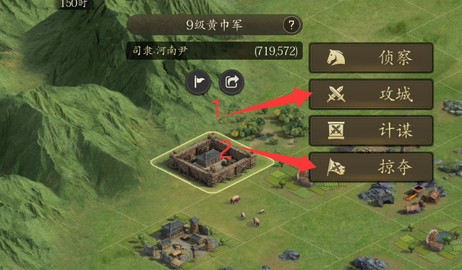 种田?没必要有,这里只有出去抢“大户”。资源地虽然也有成长产出,但是太慢了,这个怎么忍得了,想要衣食无忧,就得靠勤劳的双手去抢。这里的“大户”指的不是玩家,而是那些野外的匪军据点(黄巾军和汉灵帝)。这些城塞里面囤积了大量资源,足够前期发育,不过等级越高守军越强。