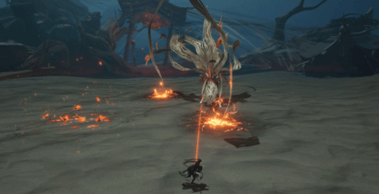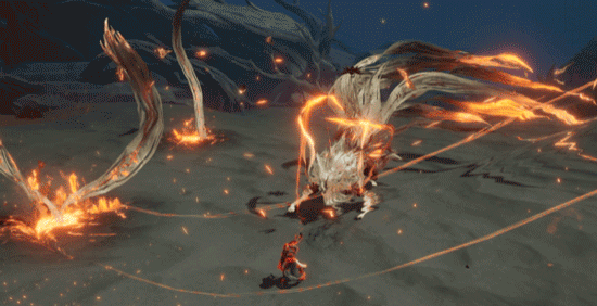火羽朱鸾以神兽之姿诞生,后供奉断绝,遭厄气侵蚀,凶戾异常,世人皆称诡域荒尊。他执掌荒古之力,行动快如星火流风,凌空振翼时火羽纷落,熊熊火焰杀招连环,所过之处皆燃烬。