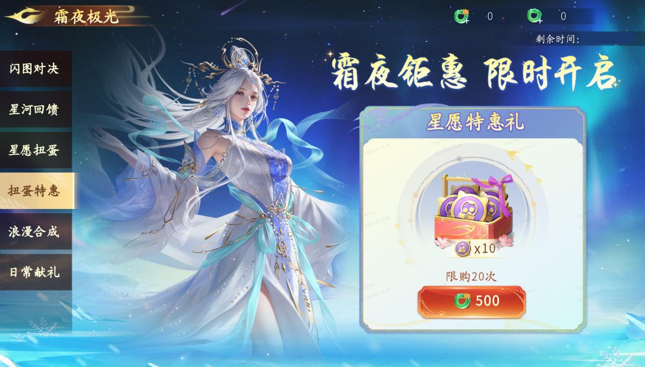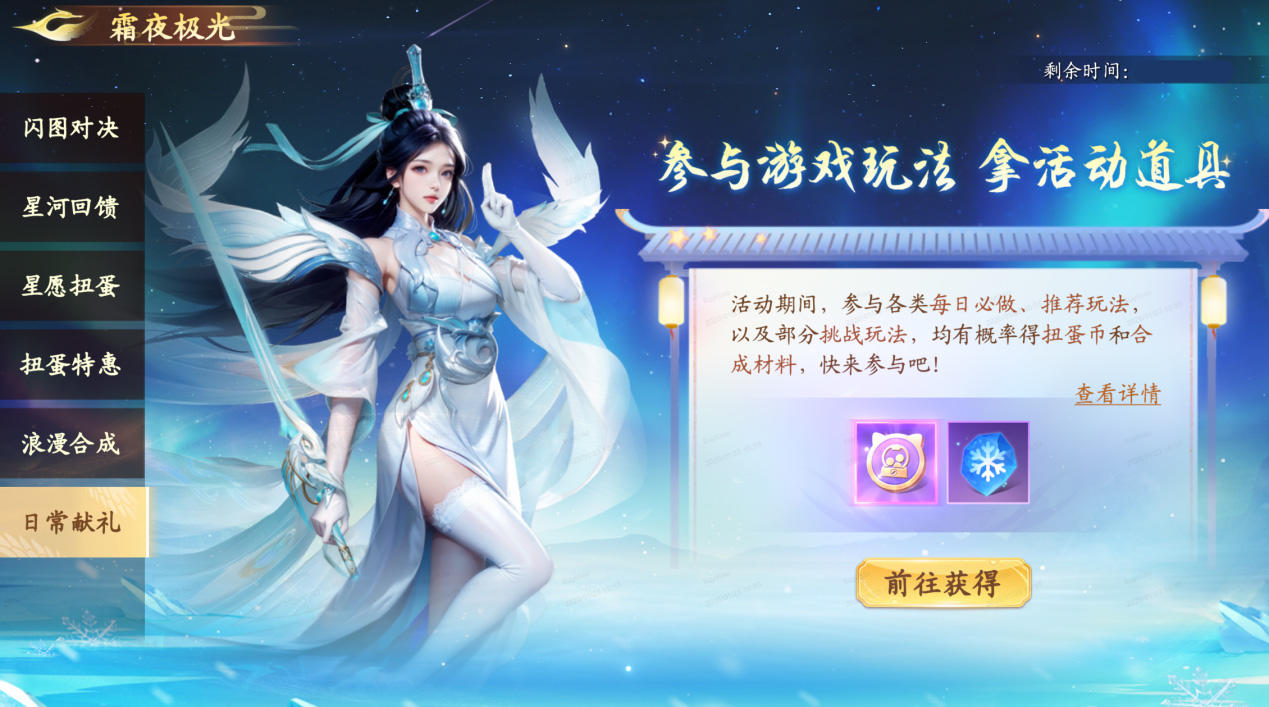 1月30日5:00-2月2日5:00期间,前往【霜夜极光】活动,冰雪灵佑上新扭蛋机,仙友们快快将TA带回家吧!还有超多珍稀道具不容错过~