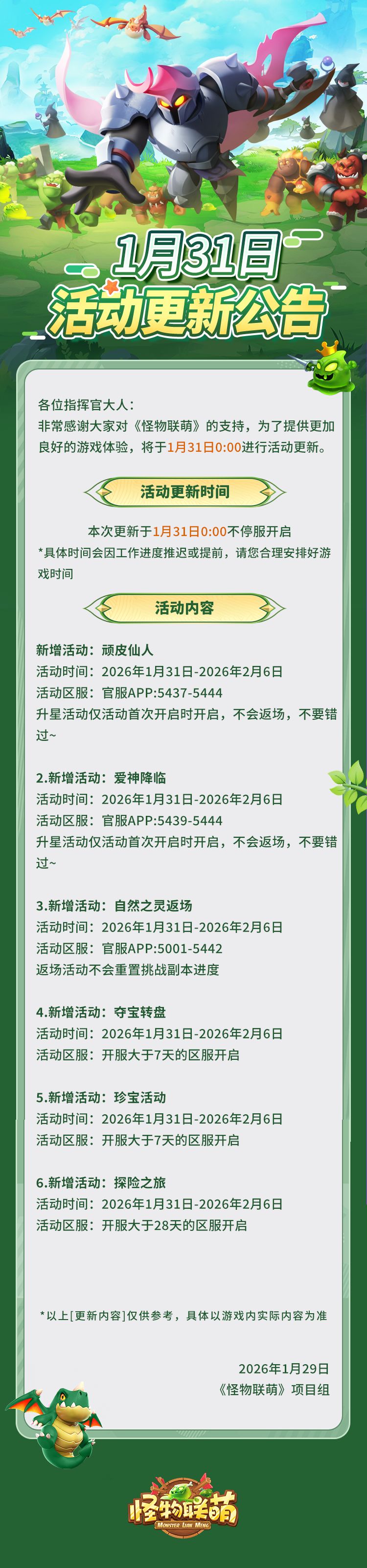 1月31日活动更新公告