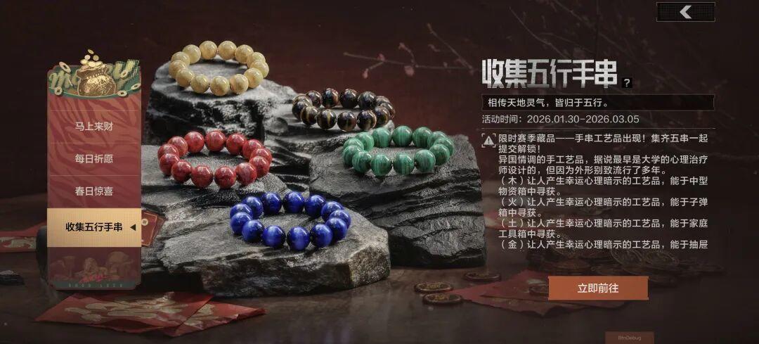 1月30日-3月5日,赛季限定藏品【五行手串】限时收集开启!