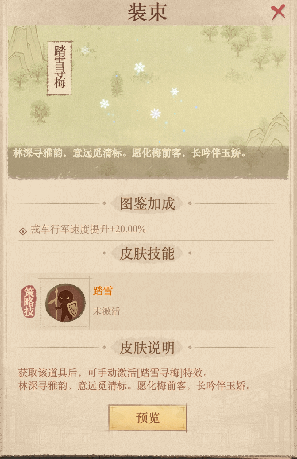 戎车皮肤“雪瑞年丰”:顶氪玩家的数值护城河作为本次活动中兑换门槛最高的奖励,“雪瑞年丰”技能激活后能为全体戎车提供5%的僚属伤害加成和3%的伤害减免,持续30分钟。冷却时间和“天罡剑气”一样,是2天且消耗60士气值,在关键的大型州战或决战时刻,这几点的百分比加成往往决定了胜负。这款皮肤更适合追求极致属性的顶氪或高氪玩家。#这城有良田 #这城有良田攻略