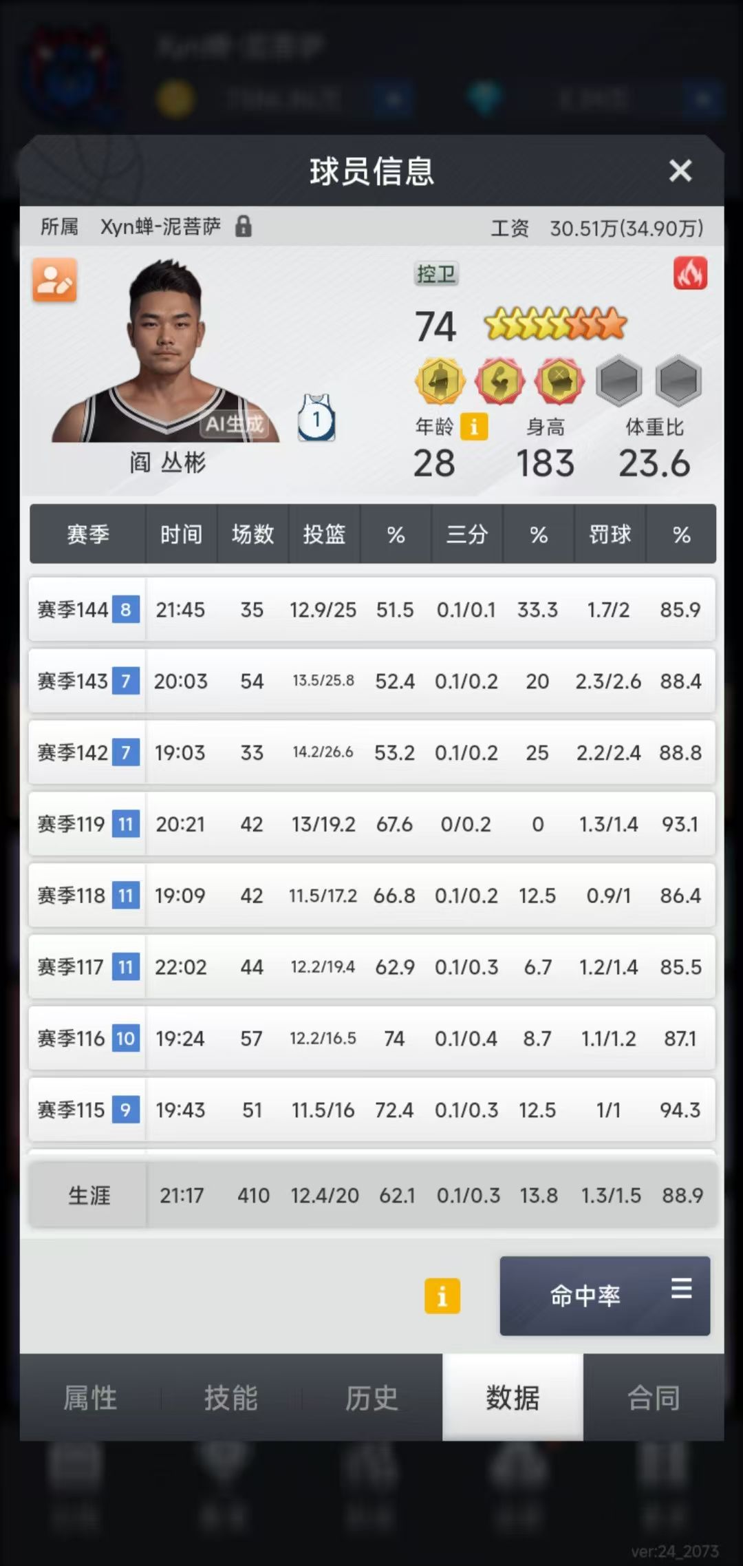 推测1:说明他所在球队的长期战术可能是空间或重外 (119赛季还没出空间战术)