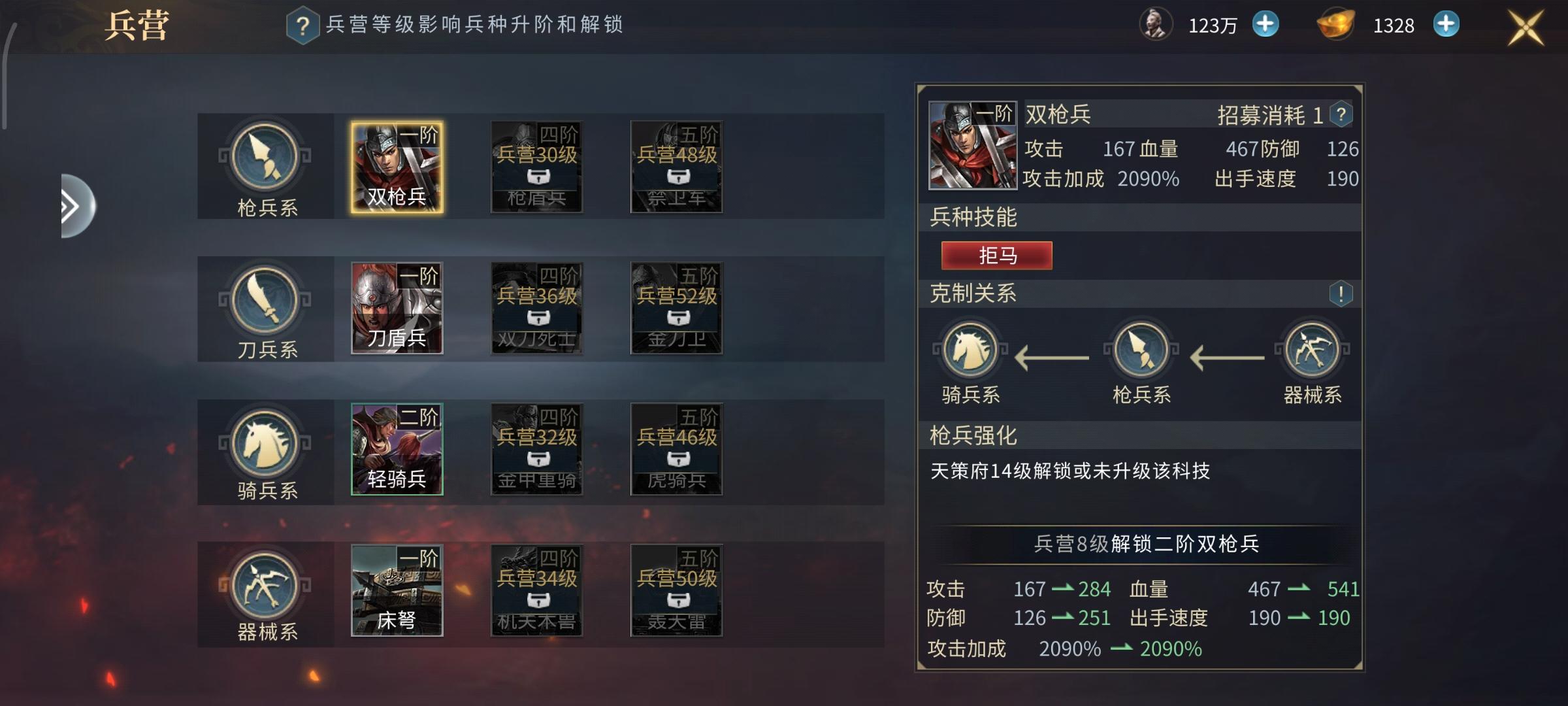 - 作用:解锁更高级兵种,提升招兵速度。