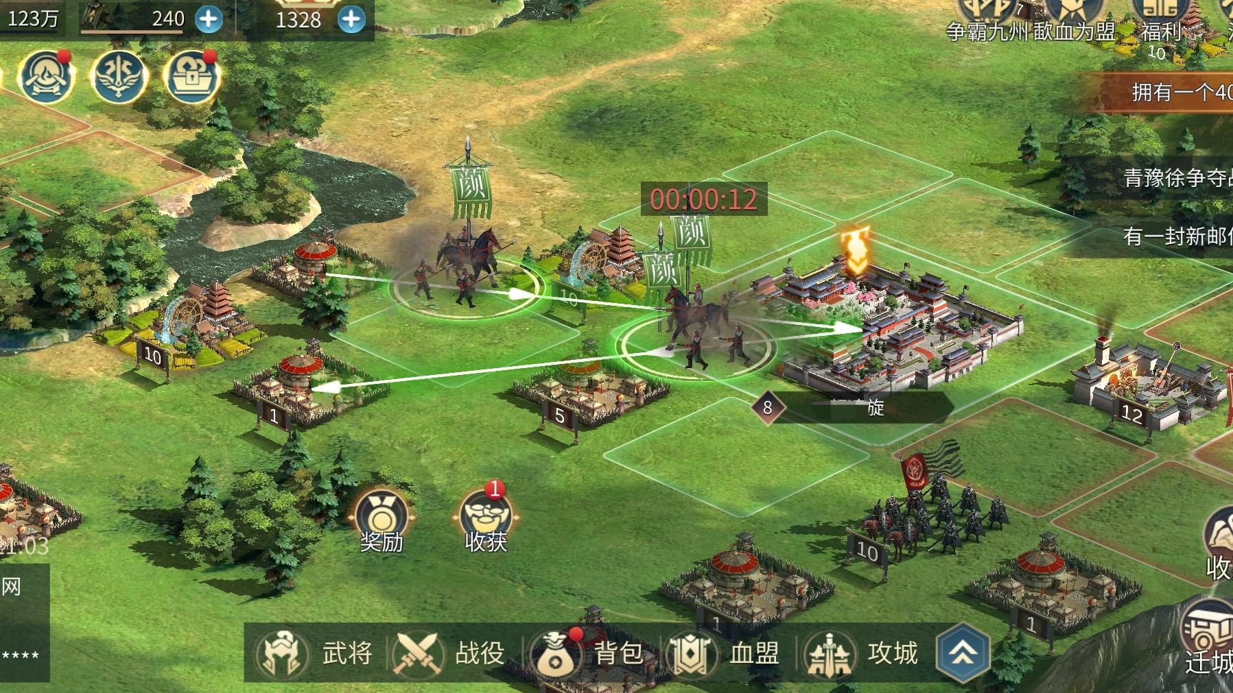 - 占领低级资源地(村落、军械库、矿山)和高级历史名城。
