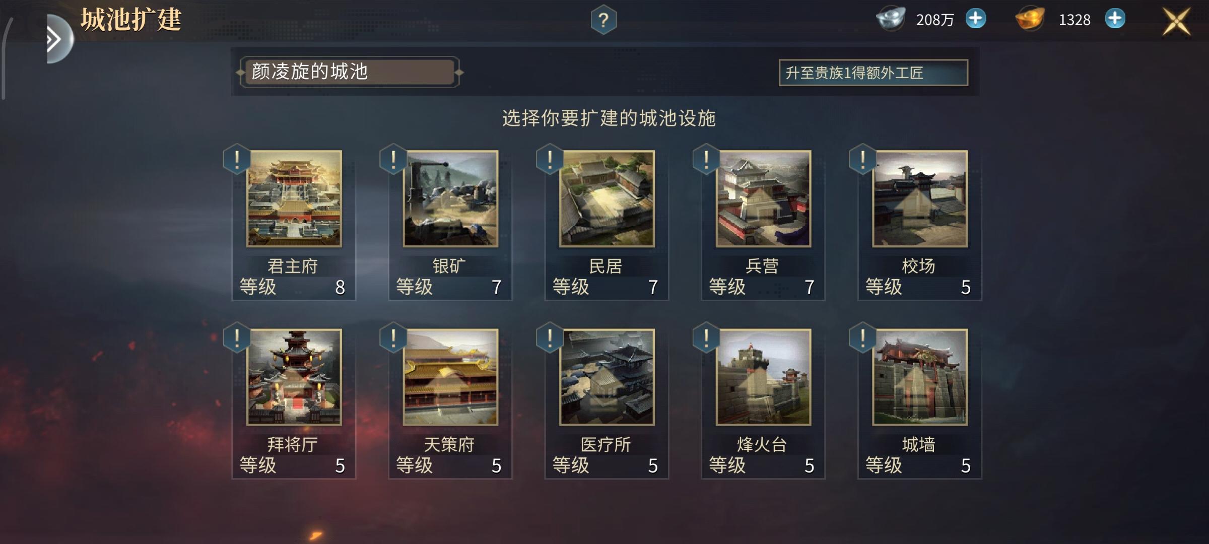 - 优先级:最高,其他建筑等级不能超过君主府。