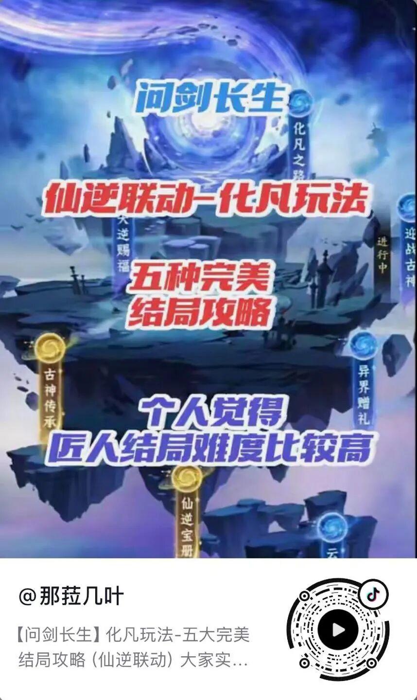 作品名称:仙逆联动化凡玩法技巧作者:问剑长生韩老登抖音号:51645541953
