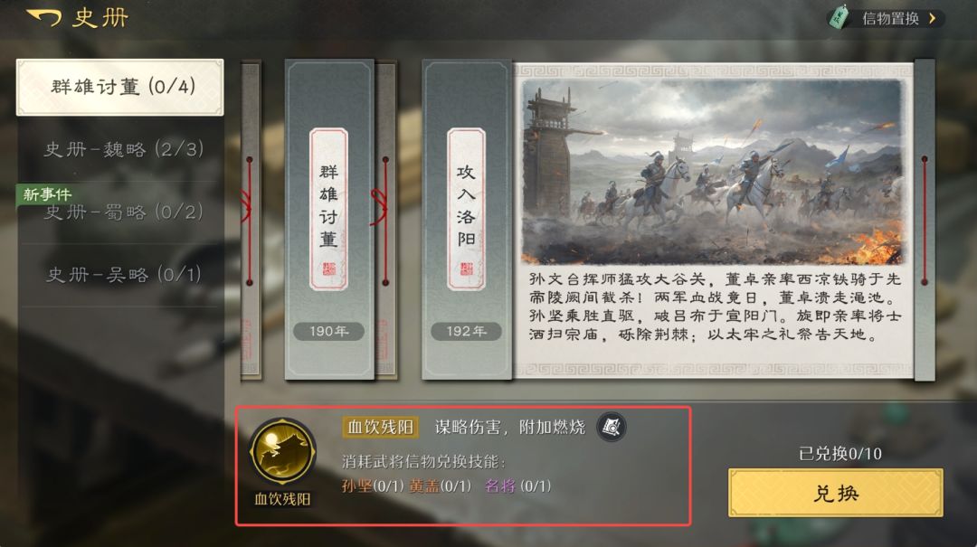 史册技能是S2赛季的新增玩法,你可以消耗特定武将的信物来兑换实用技能。
