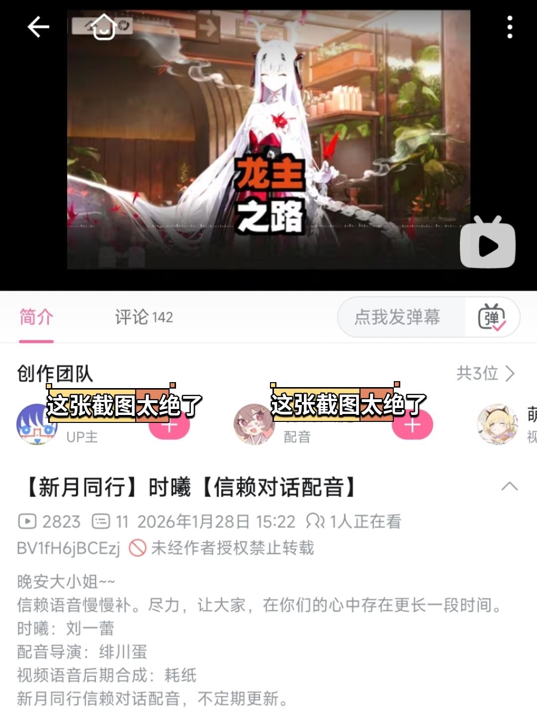 虽然游戏早已停止更新等待结局,但玩家们并没有选择放弃二创产出,近日玩家们自发为游戏《新月同行》里的角色时曦配了信赖对话语音,引发玩家们的热议。