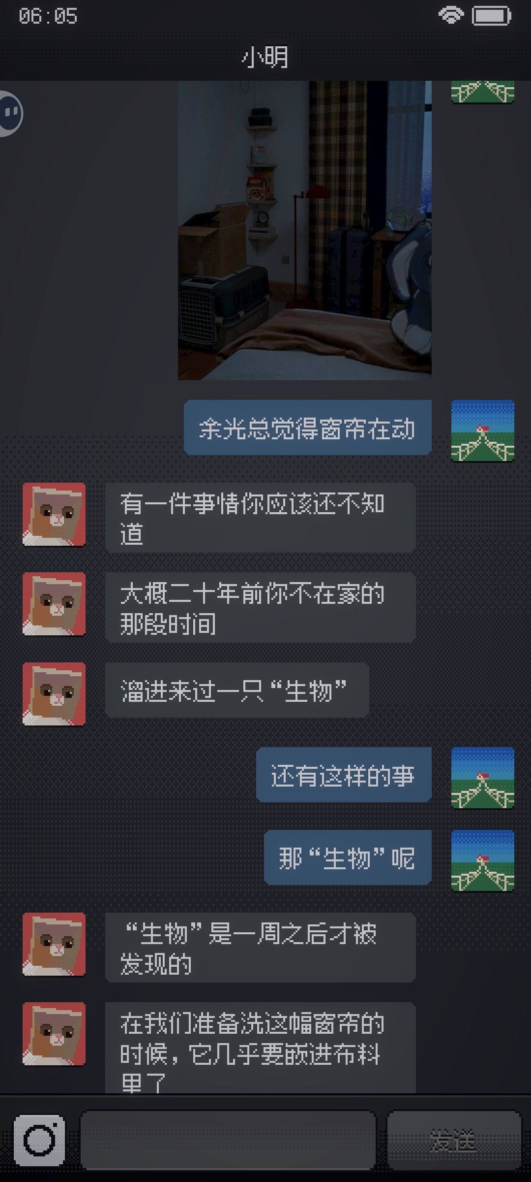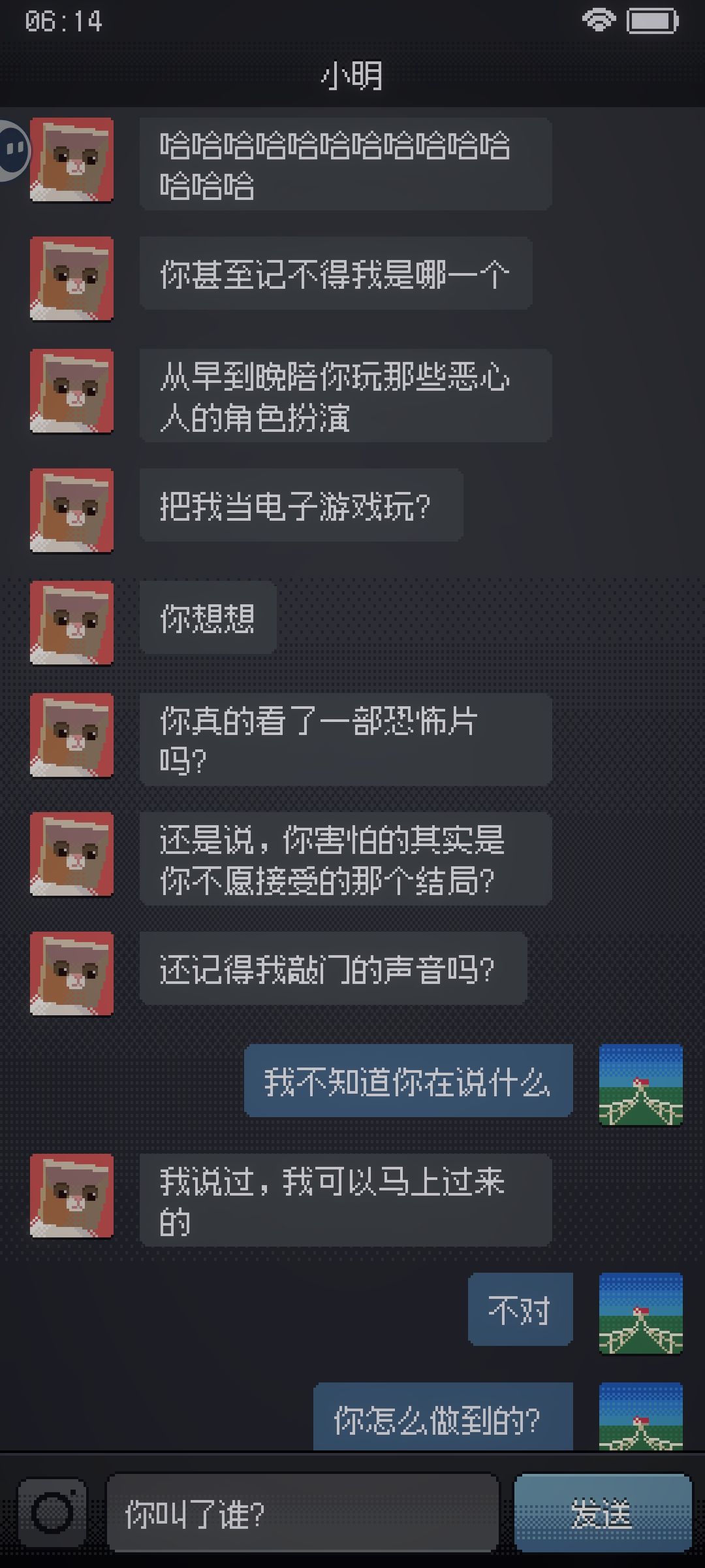 手机停在“小明”的聊天界面,我拼命地发信息,可他一字未回,只是敲门声越来越大。