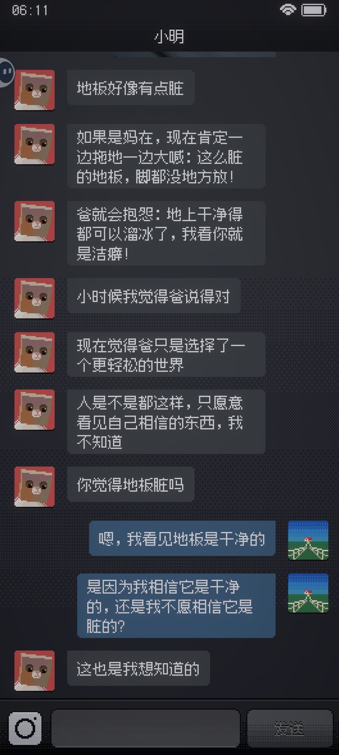 他刚才一直扮作“小明”陪我聊天。