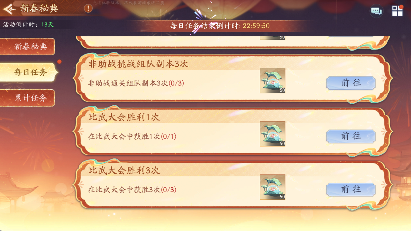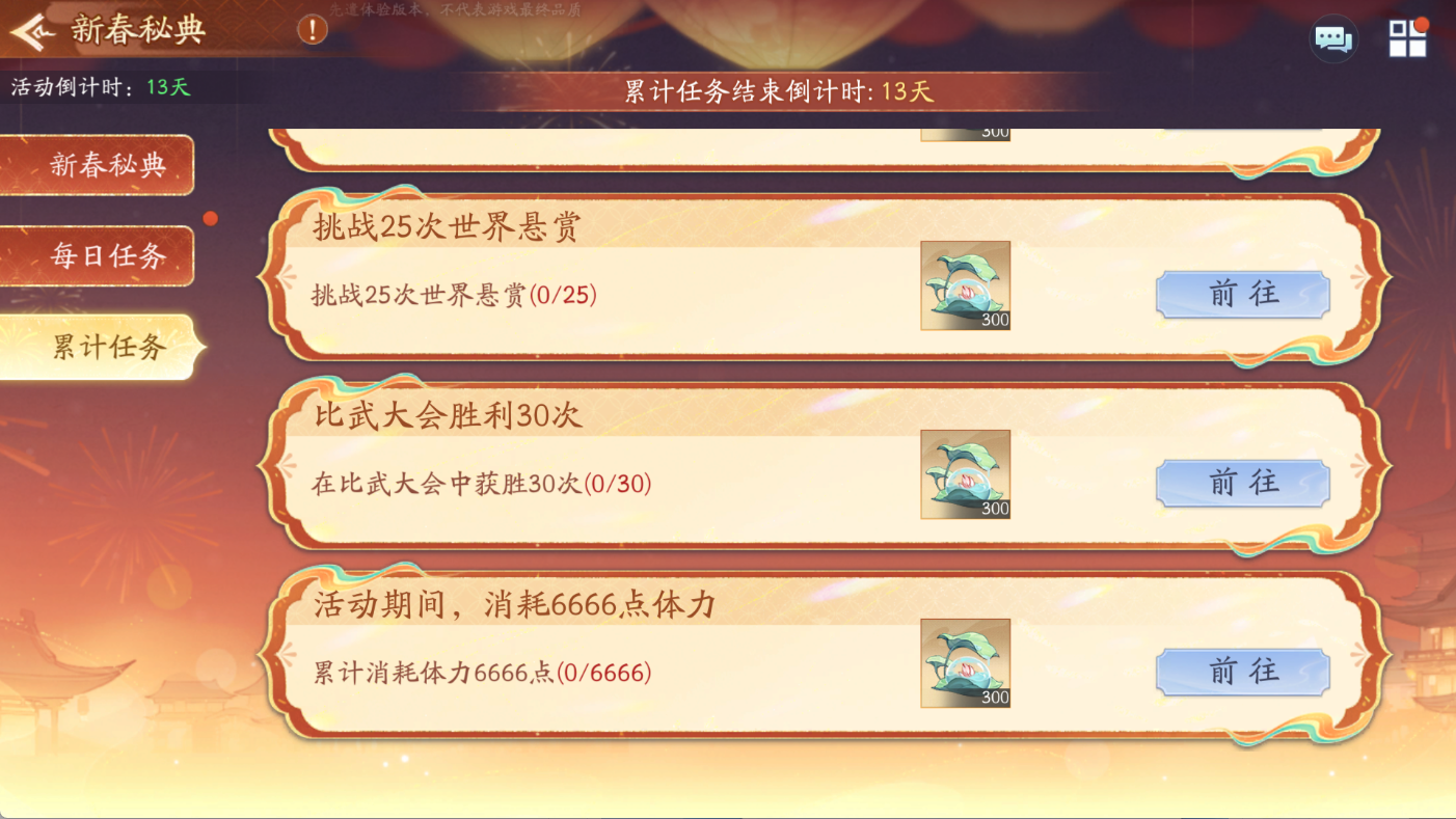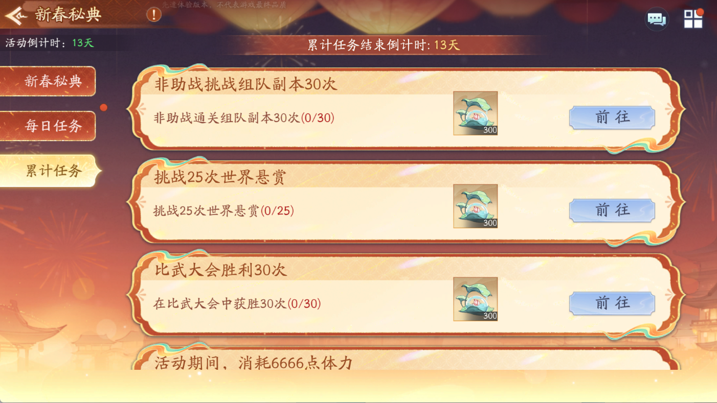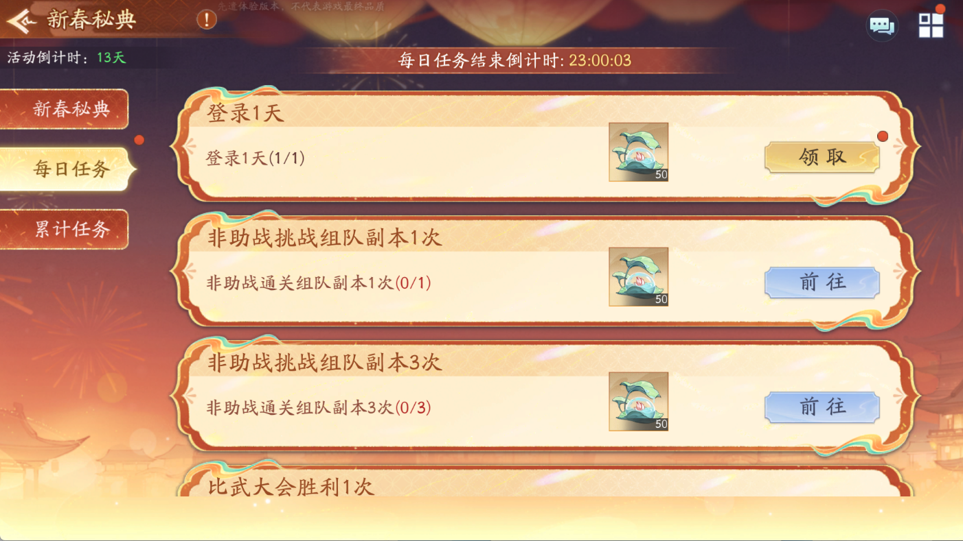 活动期间,大侠可在每日 0 点获得一次【迎春贴红】的游玩次数,次数可累积。