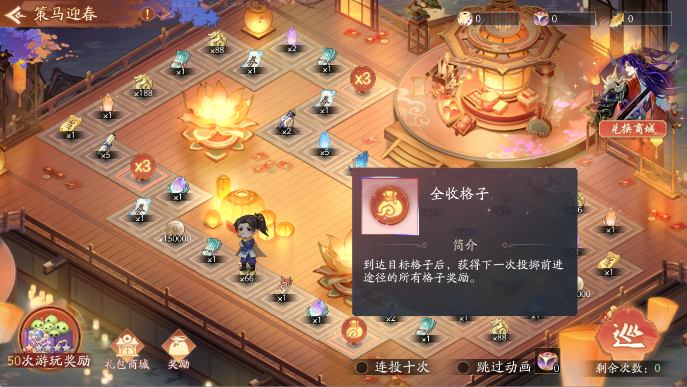 大侠每消耗 1 个【普通骰子】或【高级骰子】均增加一次累计游玩次数,累计游玩次数达到指定条件可获得对应的进度奖励。