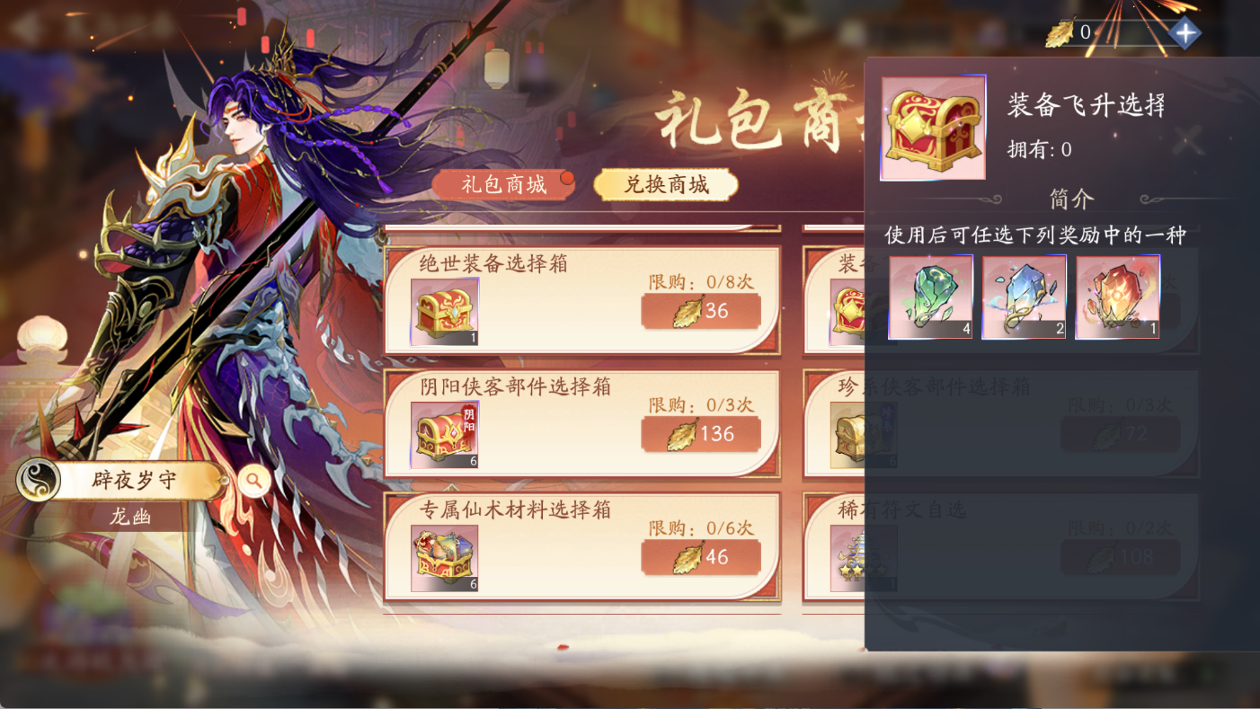 (3)消耗【金叶子】*36,可兑换装备飞升选择箱II,限购24次