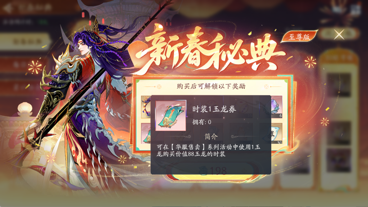 我们也为氪佬准备了价值198玉龙(战令)的新春秘典【至尊版】奖励,额外奖励如下: