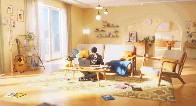 第二种视角,则是从几位主角眼里看到的画面,比如沈尼尔对着镜子挑衣服、看到手机上的消息,以及三人视频通话界面等,这些画面,都是被很丝滑地穿插在PV中的第一人称视角。