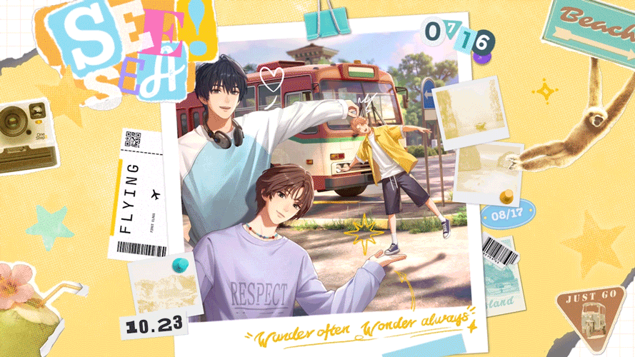 按常理来说,一个女性向游戏应该是以用户的主控视角展开,看到男主来和你谈恋爱。但《V Project》PV里的叙事,则是由李赫Lee、沈尼尔Near、周拾乐OCT三位练习生的团体视角展开,记述他们从说走就走,到踏上旅程、环游世界,再到日暮时分乘地铁回家的日常片段,并不是一个男女主之间的「恋爱故事」。