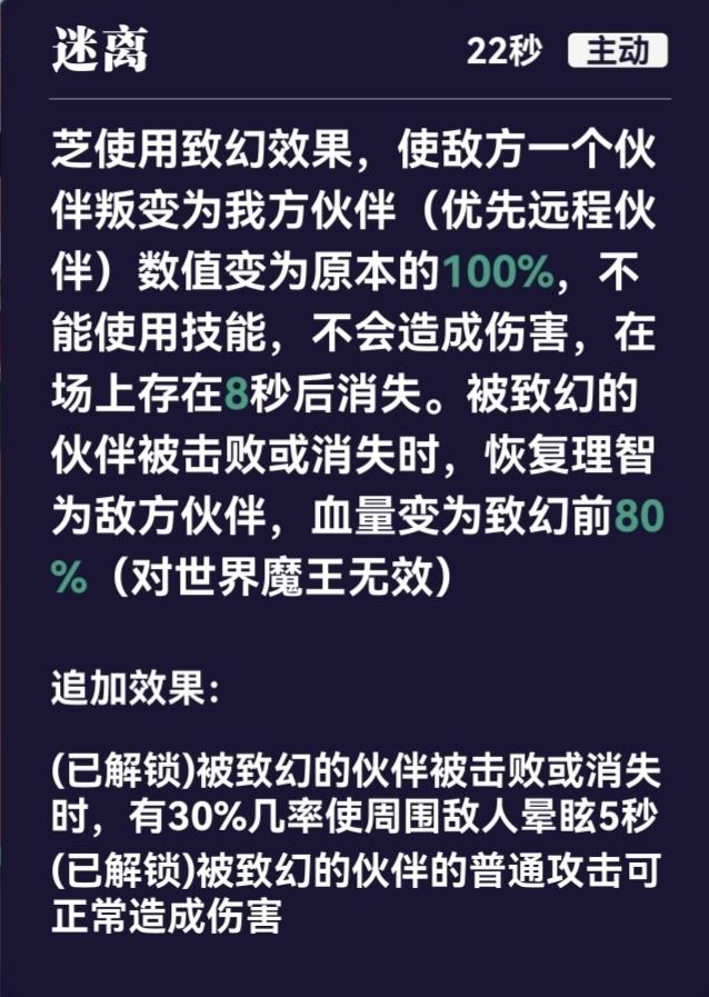 此技能是芝最具战略价值的 PVE神技(对世界魔王无效),能从根本上改变战场局势。