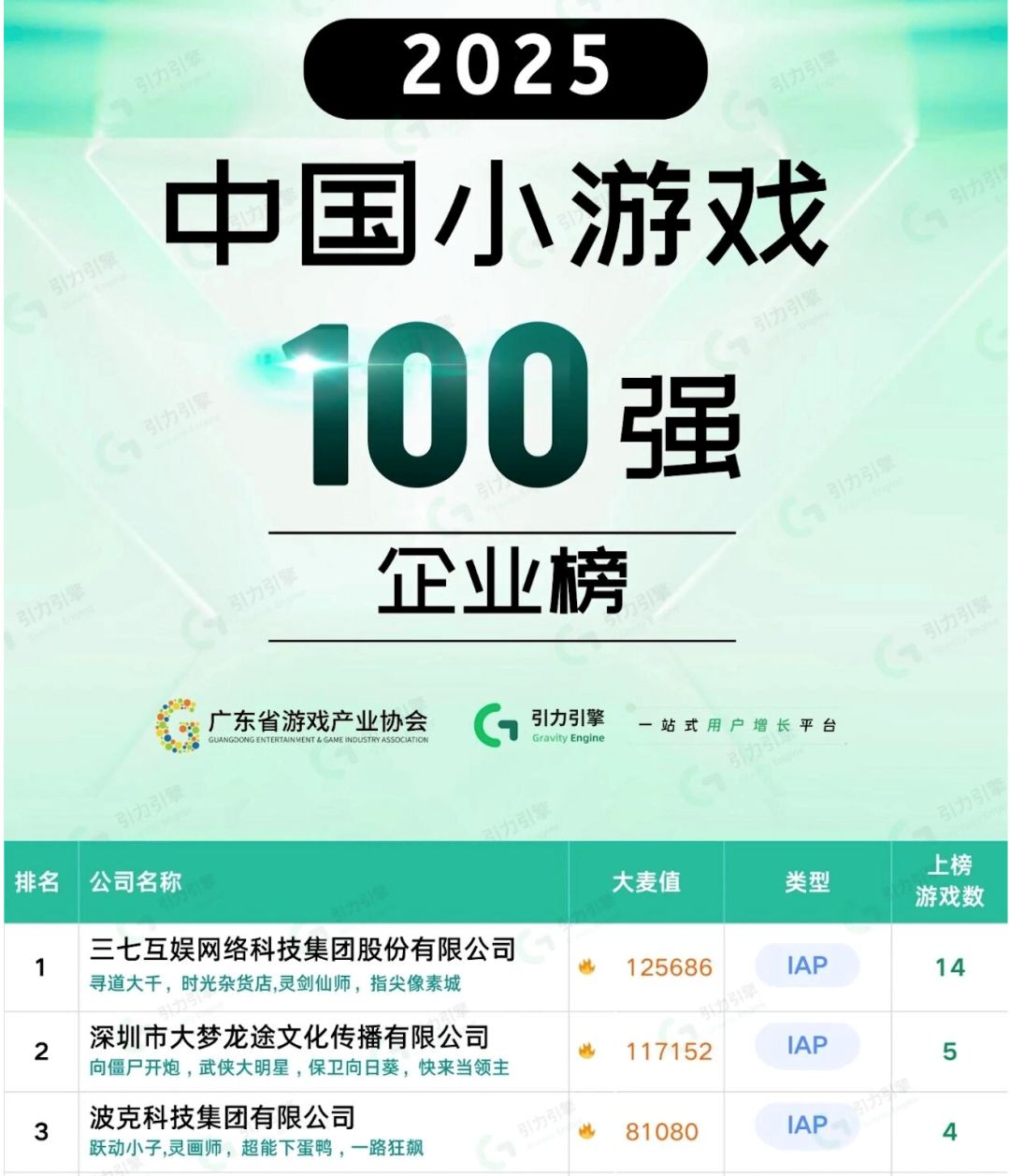 (2025年中国小游戏百强企业榜,三七互娱遥遥领先)