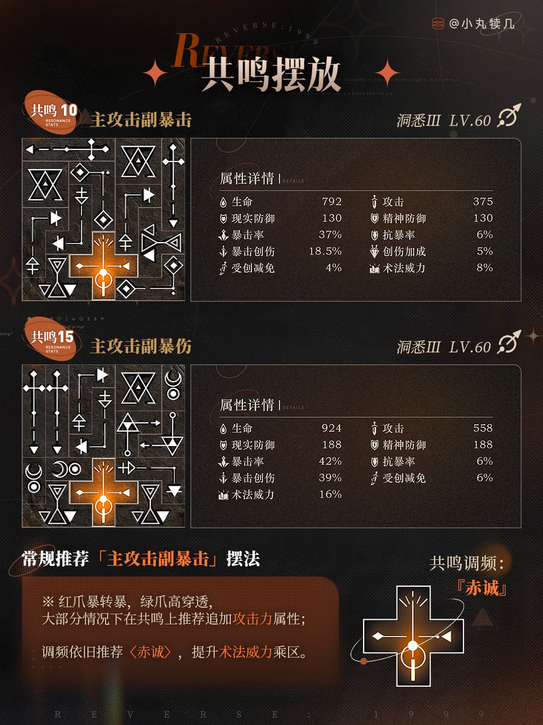 ※共鸣10『主攻击副暴击』摆法: