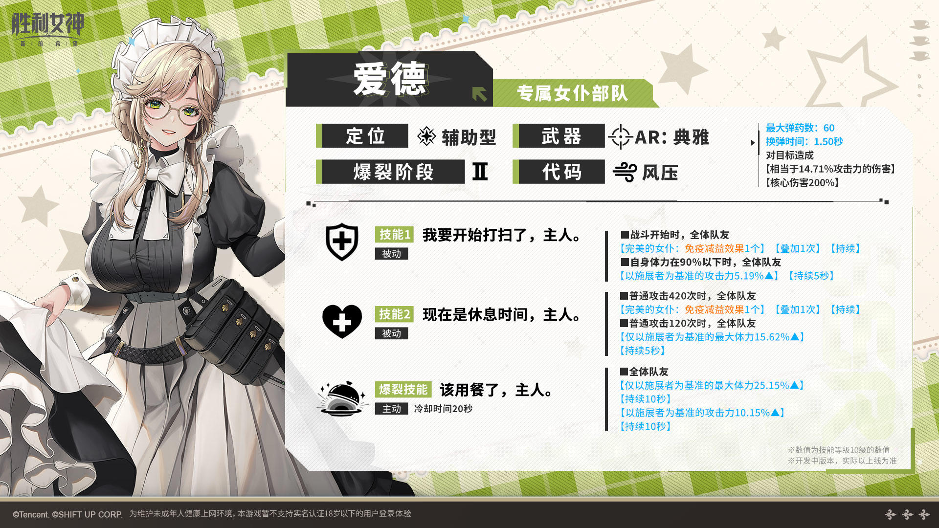 ✦ 所属部队:专属女仆部队