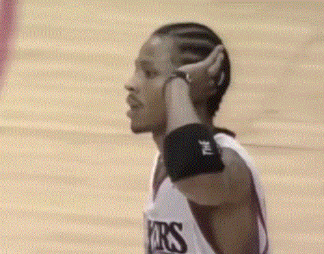 提到艾弗森,他那最具代表性的庆祝动作怎么能忽略掉:高举左手贴向耳边,聆听全场球迷的呐喊与欢呼,这不仅是享受胜利,也是向对手的无声示威。
