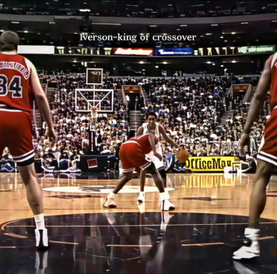 胯下运球变换节奏、接着沉肩后超大幅度回拉,加速突破,甩开防守跳投出手,作为艾弗森的成名绝技“crossover”,这一招的含金量自然也不必多说。