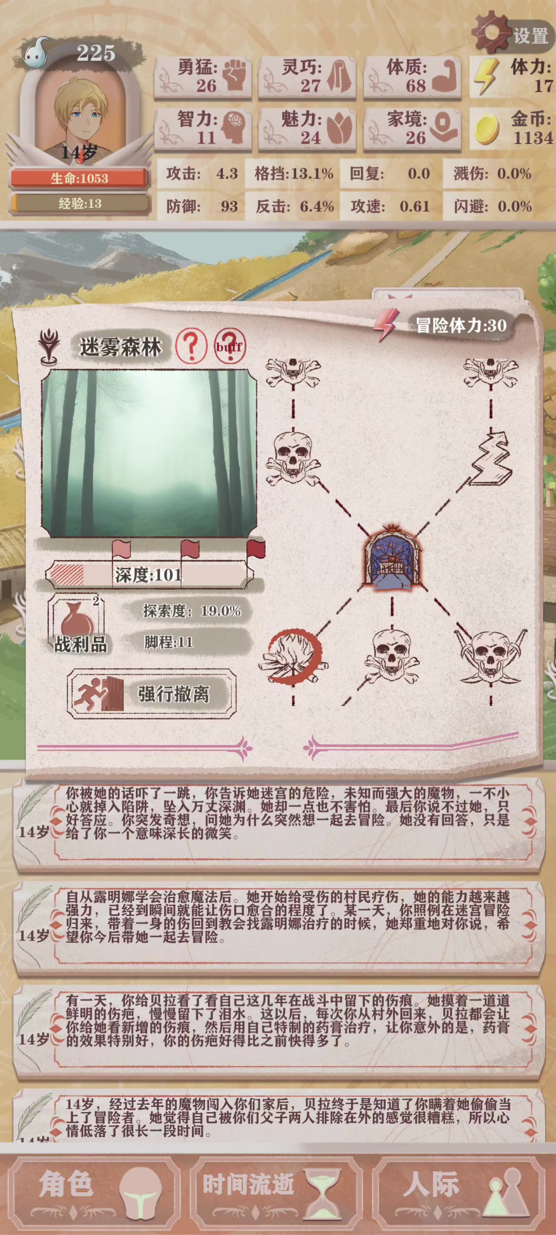 恶兆四刷装备刷到吐,就硬凹图5,而且由于懒,其实应该在削恶兆的最后一个回合凹一件装备的,不然只有51,64,77三进度,只有3件装备了。后期体质比上次0环7低就有一部分是因为放弃打工和拉体质去凹出170灵巧的。最后运气不错,只碰到3,4次2眷属,甚至还碰到一次篝火,以5死逃直面魔王了,最后剩3死逃轻松过。