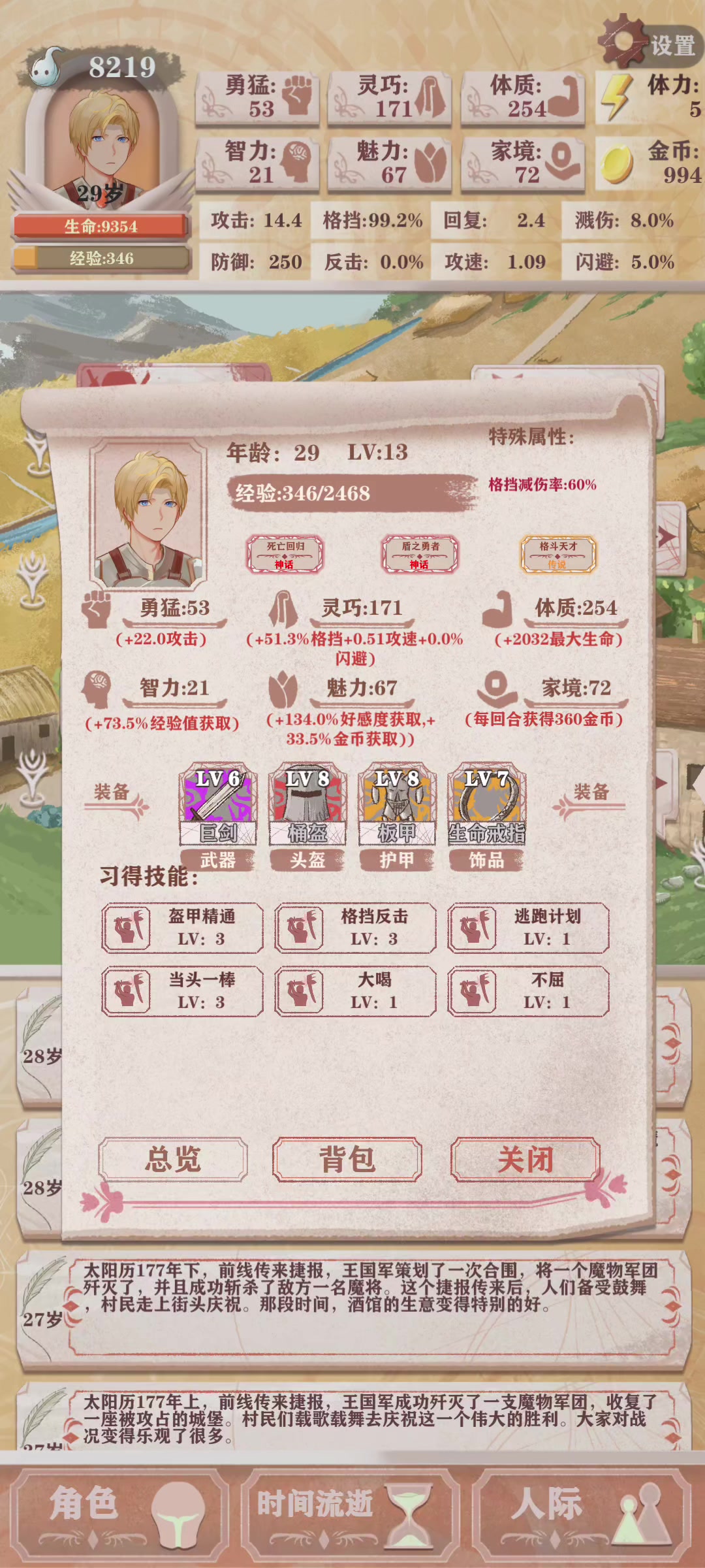 天赋:死亡回归,盾之勇者,格斗天才
