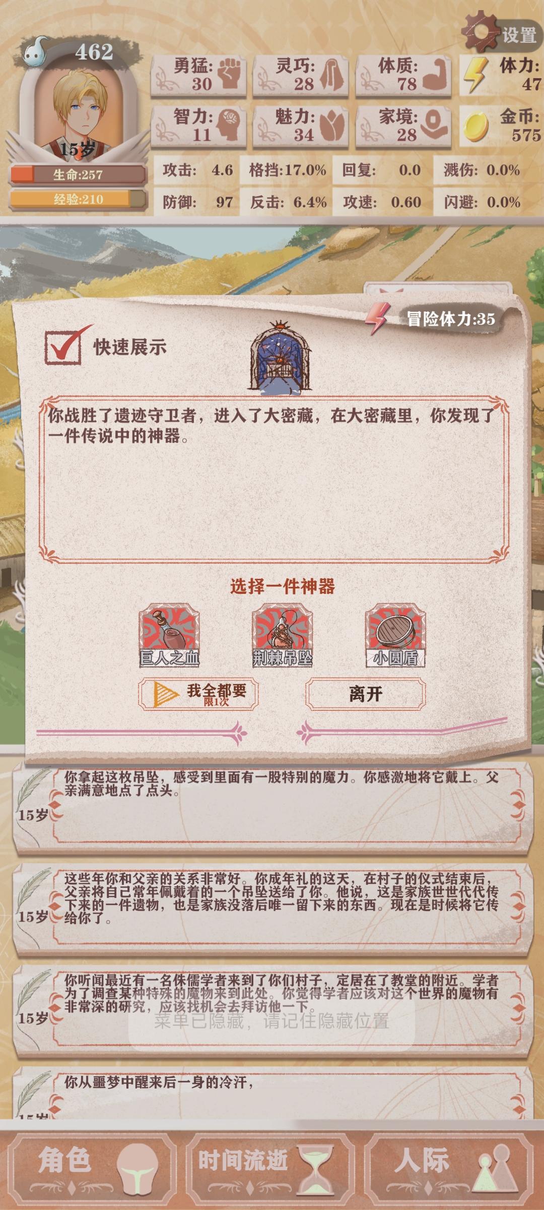 这是装备和神器,区别在于我因为凹路线,去打的图三boss,多了个防御护符和精灵权杖
