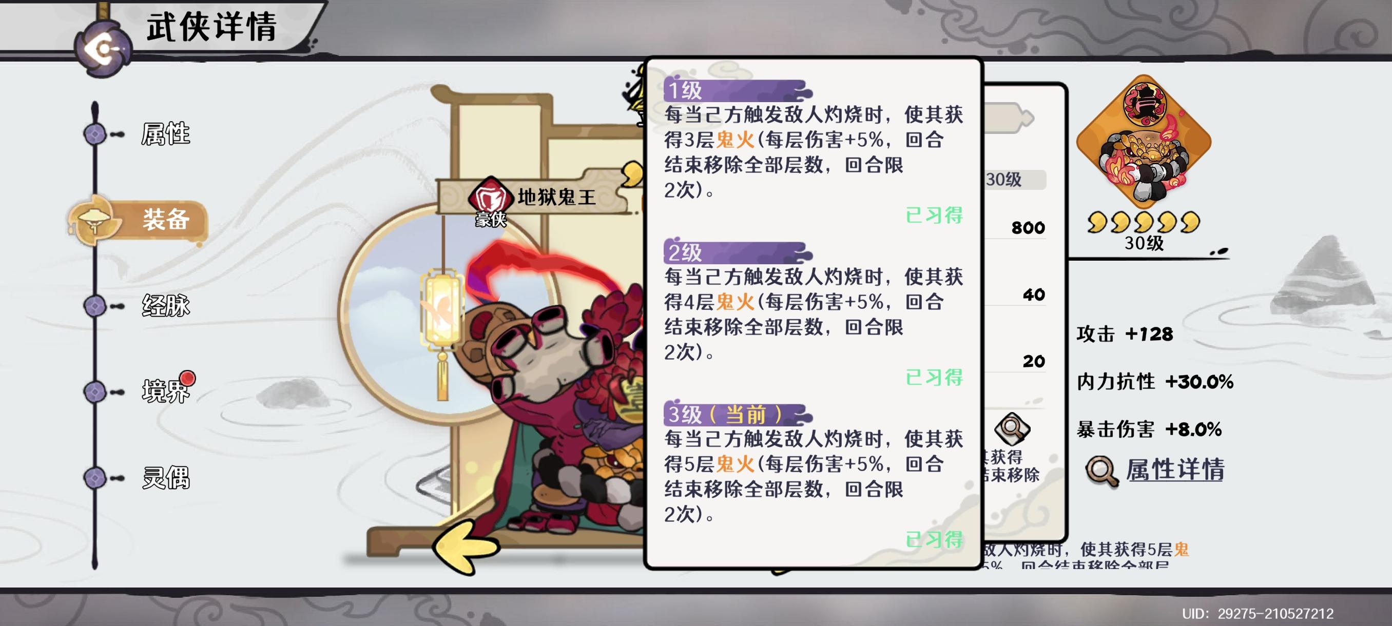 可以看到鬼王武学的合击占输出大头,所以阵容搭配优先选择直接印卡的墨神