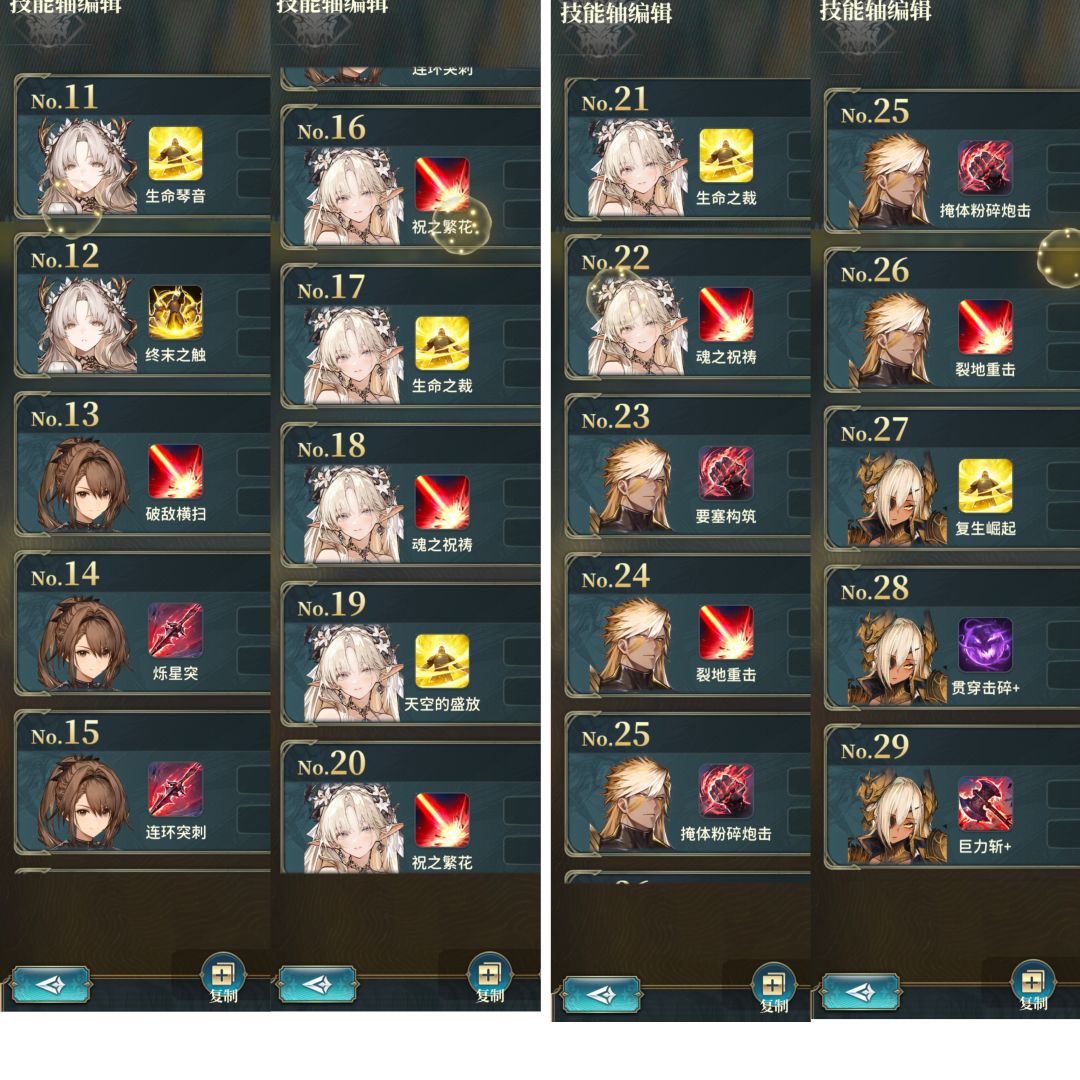 盘子重要的是土机人,神武,黑爷爷武器选择附魔连击,普攻伤害上限的词条。其次我们可以选择阿米娅的长枪进一步提供多段攻击的概率,加上土天人开技能后可以必定3连。那这个配置打长轴就ok了