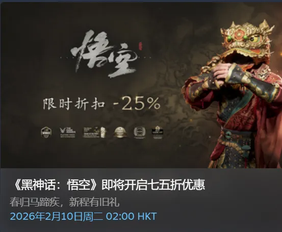 《黑神话悟空》新史低75折,价格坚挺的黑猴终于要打折了!
