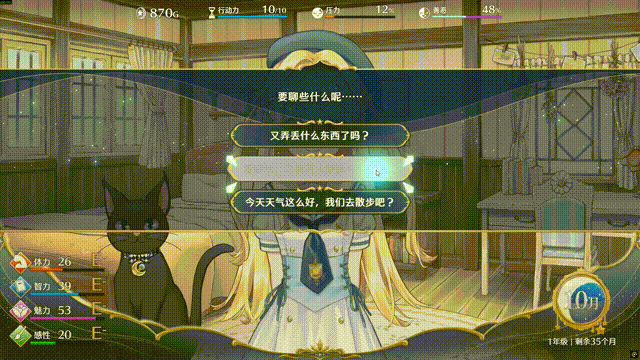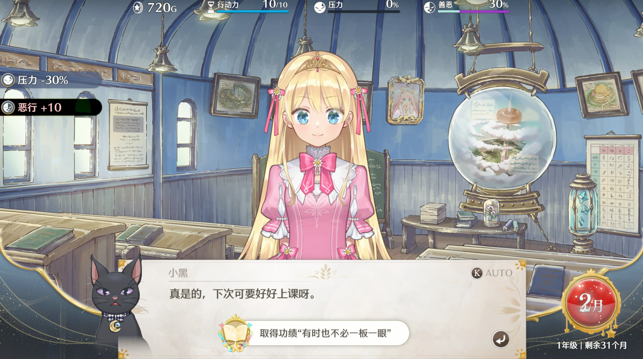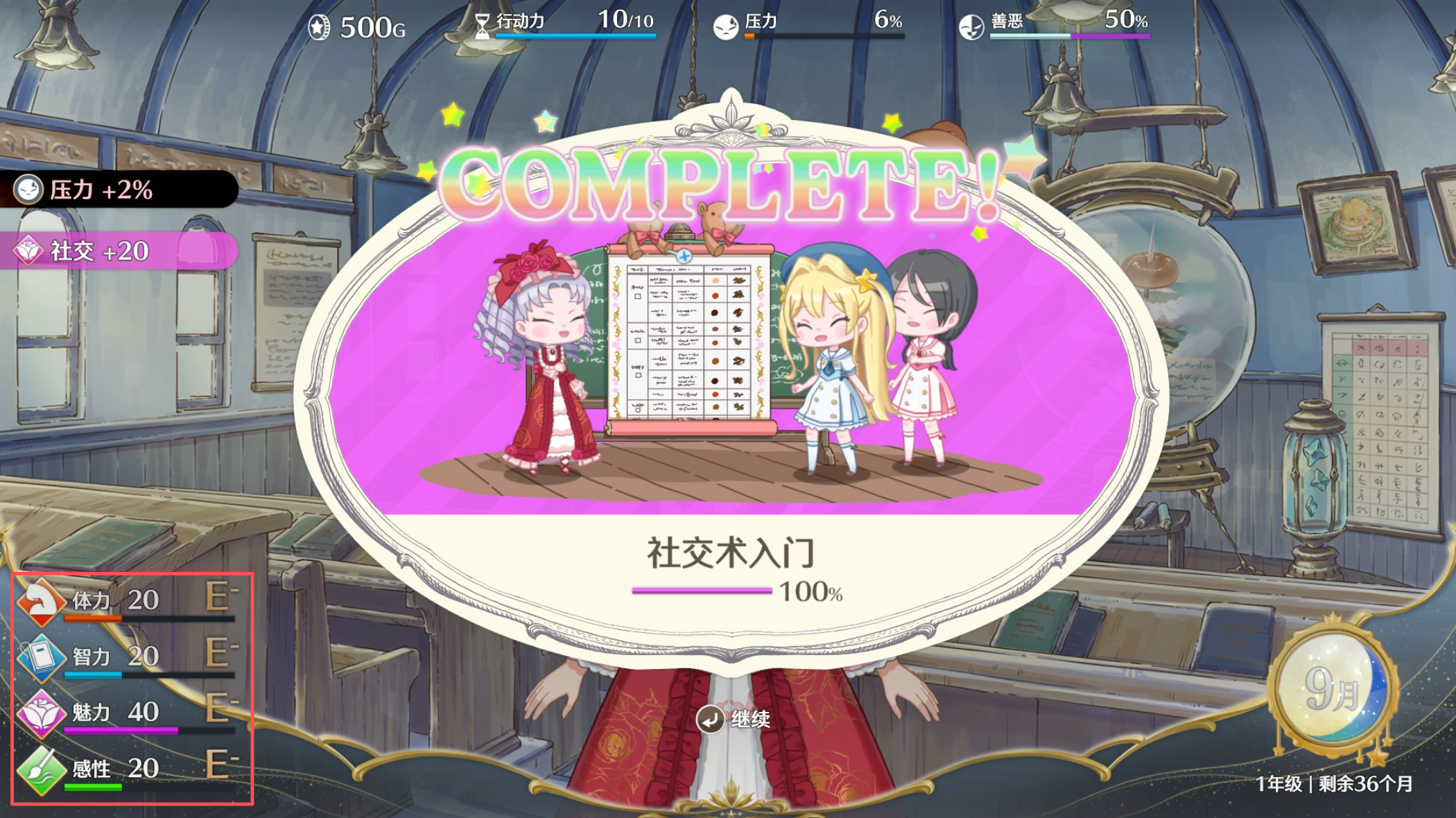 因为游戏依然将属性划分为:体力、智力、魅力和感性四大类,所以每个月上学时,你仍然可以选择其他课程,进行一周五天的学习。