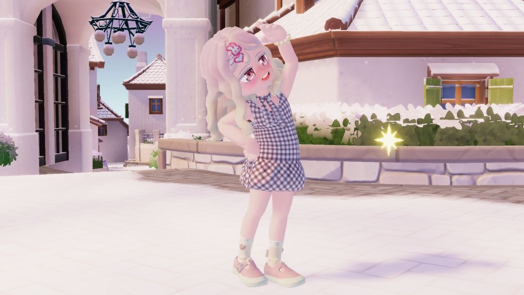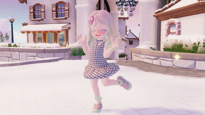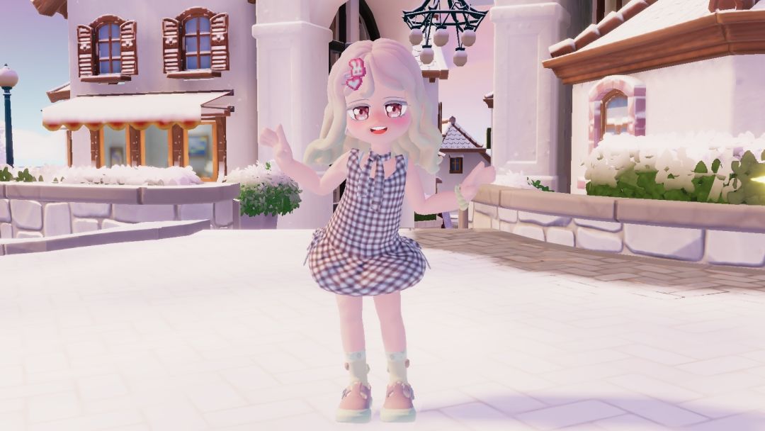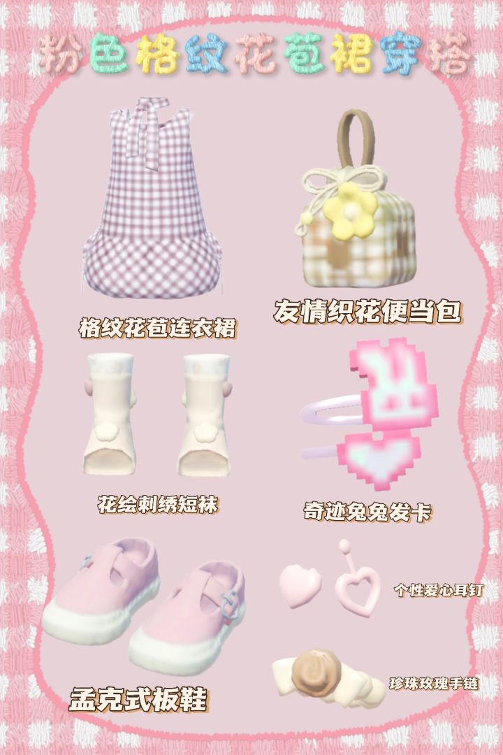 ④心动小镇新衣服粉色格纹花苞裙4.0穿搭