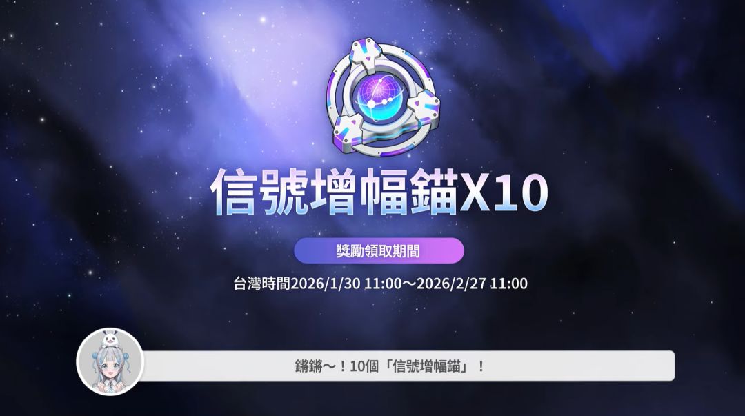 2. 100天纪念奖励 :官方在1月30日100天纪念日当天放出了感谢视频,除了对各位玩家的感谢之外,还送出了10个信号增幅锚。