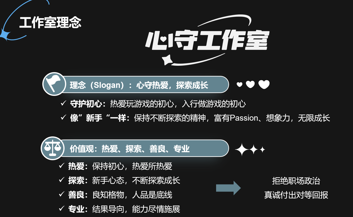 团队的同学开发、策划和美术都是在游戏行业从业多年,都有大厂经验。我们因为有一样的理念聚在一起,直接看我们的工作室理念吧~如果认可并有想法加入我们的朋友,也欢迎联系我们。