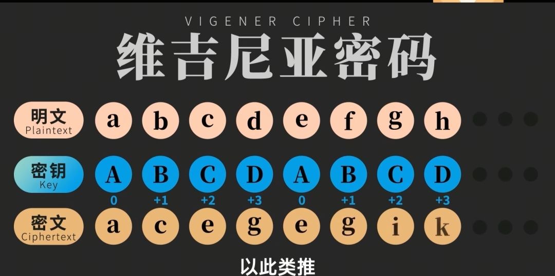 26个字母a–z密钥规则,是对应0-25偏移数,a表示偏移0,就是不偏移,b偏移1位,c偏移两位…密钥数量如果少于明文,就原密钥重复拼接,例如下图明文为abcdefgh,密钥原本是abcd,就变为abcdabcd,和明文数量对应。然后计算偏移数,变成acegegik
