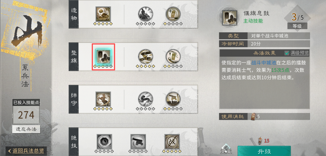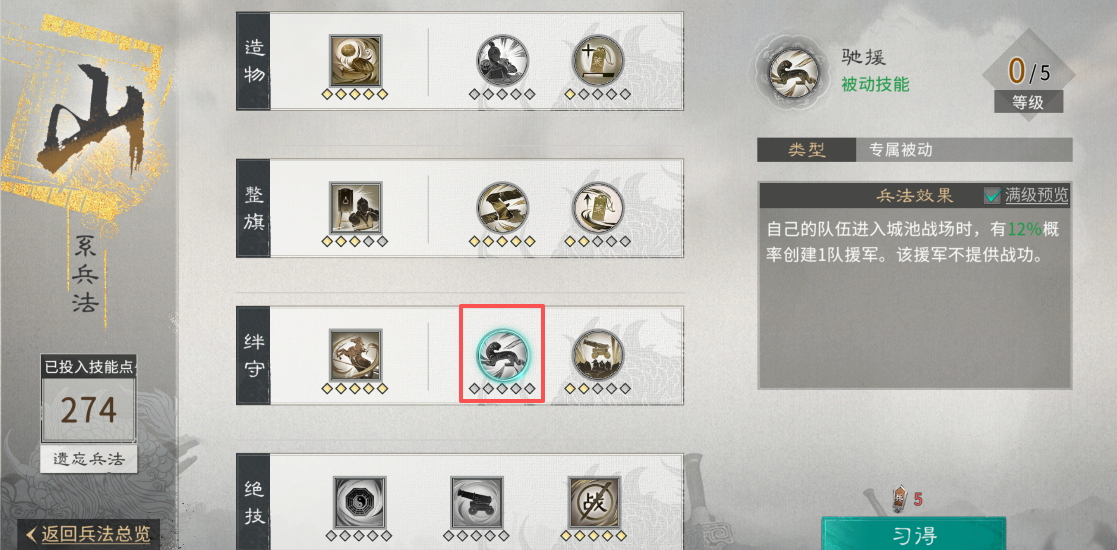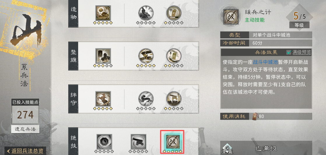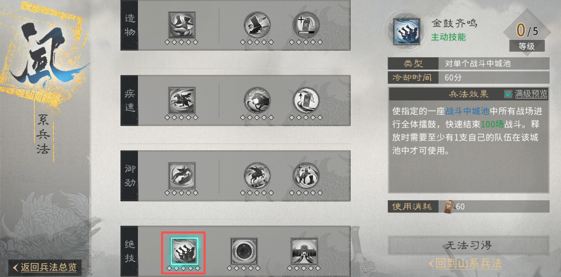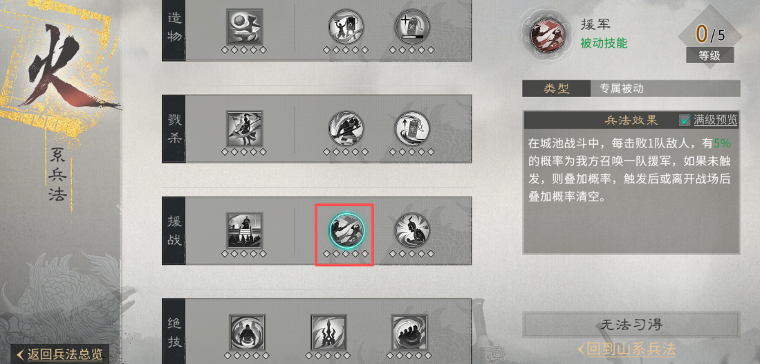 在进攻时,应及时将已派遣的山、林、火系兵法中带有援军及城防军“重置”收回,分别为山系兵法【驰援】、林系兵法【薪传】与火系兵法【援军】,避免其堵塞行军路线,阻碍盟友突围,导致兵力浪费。
