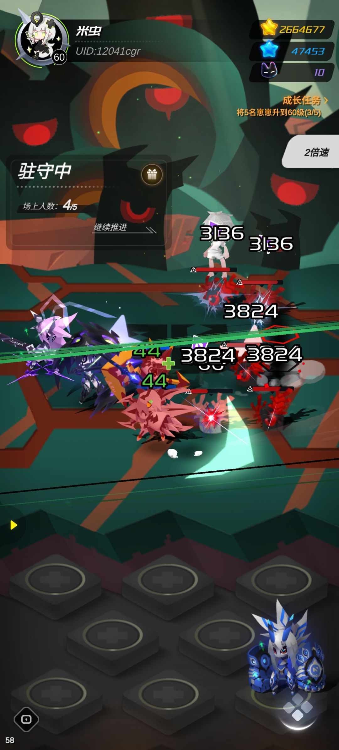 1.1、崽崽选择:优先培养银色武神(常驻,前排吸血战士)或者无因(限定,前排自回盾坦克),集中培养1个角色至160级-180级。