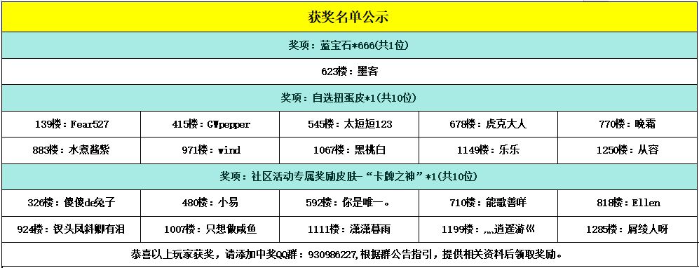 恭喜以下幸运的小骑士获得活动奖励,请中奖的小骑士添加获奖群:930986227,请加获奖群后,登记相关获奖信息,超过15个自然日未进群未登记视为放弃奖励~