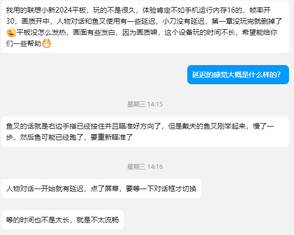 那么接近最低配置(安卓在系统Android 8.0、运行内存6GB、处理器骁龙680或同级性能处理器,iOS在运行内存4-6GB)的潜水员或许(请!一!定!)开始担心,接近最低配置的自己,在游戏体验会受限的情况下,是否要购买游戏了吧。于是在跟大家尽可能的明确游戏的配置需求之余,我们还联系了几位接近最低配置的测试潜水员,和大家分享一些主观感受。